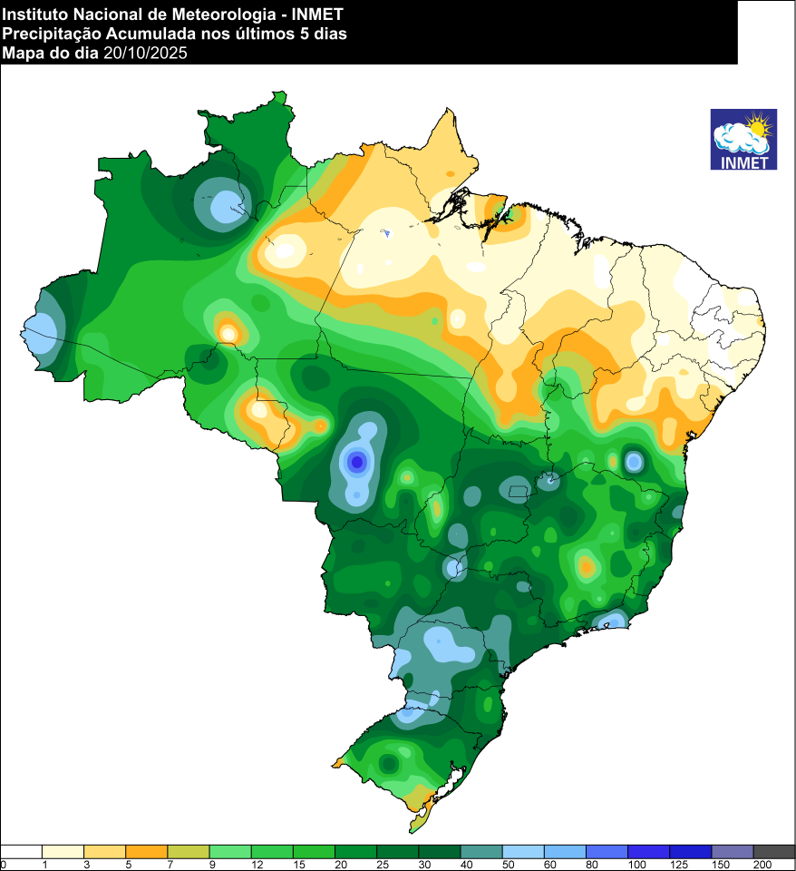En Brasil, con datos al jueves último, la consultora AgRural relevó el avance de la siembra de soja 2025/2026 sobre el 24% del área apta, contra el 14% de la semana anterior; el 18% de igual momento de 2024, y el 30% de la misma fecha de 2023.