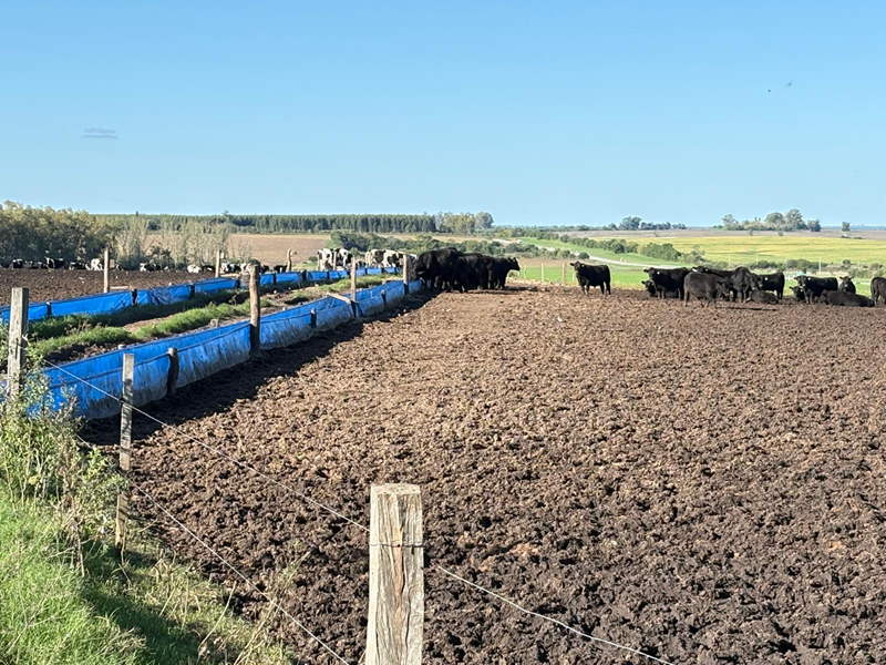 Actualmente en el corral, que fue definido “de oportunidad”, hay dos lotes, uno de novillos Holando y otro Aberdeen Angus; los primeros entraron en febrero con 475 kilos y los segundos en marzo con 430 kilos.
