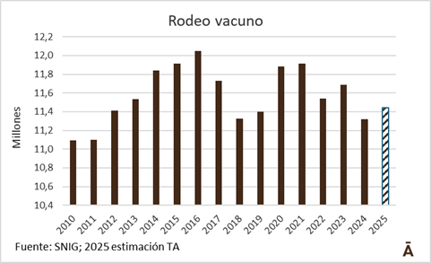 Por lo tanto, entre ingresos y egresos del sistema, el rodeo crecería en unas 120-130 mil cabezas a alrededor de 11,45 millones. Más allá del modesto crecimiento, sería el segundo más bajo en lo que va de la década.