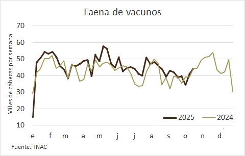 INAC informó que en la semana al 18 de octubre ingresaron a planta 44.156 vacunos, algo más de 3 mil cabezas por encima de la anterior (8%) y solo 225 cabezas menos que en la misma semana del año pasado.
