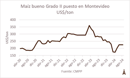 Es que Uruguay pasó de tener perspectivas de una supercosecha al final del verano con las primeras cosechas de verano (incluso con negocios de exportación) a un pobre y decepcionante resultado en las últimas chacras de segunda por las secuelas que dejó la chicharrita. De negocios con maíces puestos sobre un eje de US$/t 160-170, en poco tiempo se pasó a referencias por encima de los US$/t 200 como las actuales.