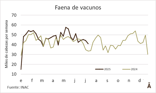 Tal como se esperaba, se produjo un descenso adicional del nivel de actividad de la industria frigorífica la semana pasada. La suspensión de actividades en frigorífico Tacuarembó, de Marfrig, se sumó a la de Carrasco, de Minerva. Fueron 23 las plantas con actividad, una menos que en la anterior y dos menos que dos semanas atrás.