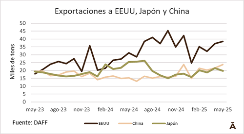 Las exportaciones australianas de carne vacuna en mayo se dispararon hasta alcanzar el tercer volumen mensual más alto jamás registrado, con un total de 129.478 toneladas. Se trató del mayor volumen para un mes de mayo, y significa que los tres mayores volúmenes mensuales históricos se han producido en los últimos 12 meses. Solo julio y octubre del año pasado mostraron mayores niveles de comercio mensual, siendo octubre el récord absoluto con 130.048 toneladas.
