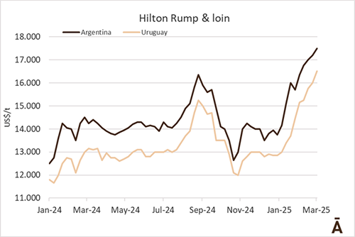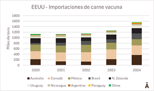 En el caso de los principales proveedores internacionales de carne vacuna al mercado estadounidense (más allá de sus vecinos en América del Norte) la tasa pasa a ser de 10%, tanto para los países del Mercosur como para los de Oceanía.