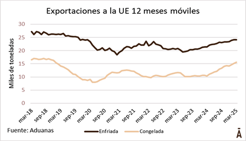 La disminución de la cuota 481 de la que Uruguay puede participar no está impidiendo una tendencia de aumento de las exportaciones uruguayas de carne vacuna a países de la Unión Europea, tanto en el caso del enfriado como del congelado. La reducción de la oferta interna de esta proteína está teniendo un peso mayor y lleva a que se trabaje por fuera de las cuotas o que se haga un uso creciente de las mismas.