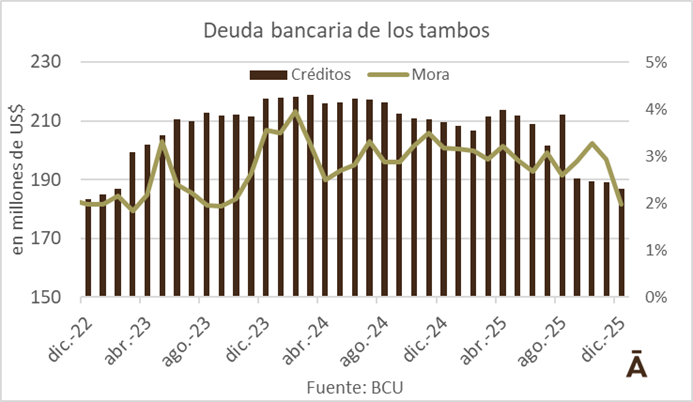 El endeudamiento de los tamberos con la banca privada y pública siguió cayendo al cierre de 2025 y tocó su menor nivel en más de tres años.