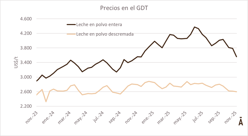 La tendencia bajista del mercado internacional de los lácteos parece no encontrar su piso y la leche en polvo entera acumula una baja de casi 20% desde su pico de precio alcanzado en mayo.