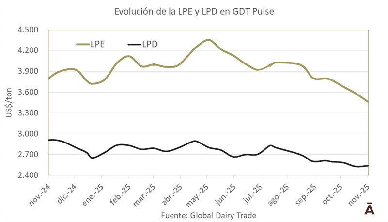 El piso para el mercado internacional de los lácteos parece no encontrase. En el remate de este martes 11 de noviembre del sistema GDT Pulse de Fonterra, el precio medio para la leche en polvo entera (LPE) bajó por séptima subasta consecutiva y perdió los US$/t 3.500.